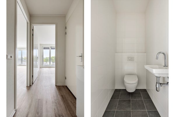 Geniet van een ruime woonkamer met een heerlijke buitenruimte van 4,4 m² in de vorm van een zonnige loggia. De perfecte plek om het buitenleven naar binnen te halen. De woonkamer beschikt over een gezellig zitgedeelte en een moderne open hoekkeuken, compleet met een witte Bruynzeel keuken, hoge kwaliteit en voorzien van luxe Siemens inbouwapparatuur. Ook de badkamer is een luxe oase in het wit, uitgerust met een Hansgrohe douchemengkraan, Villeroy&Boch wastafel en een prachtige ronde spiegel. Het toilet van Villeroy&Boch is eveneens in stijlvol wit. De slaapkamer beschikt tevens over een grote raampartij en grenst aan het balkon. Bij oplevering kun je bijna direct intrekken, want de woning is al fraai afgewerkt met een lichte pvc vloer voorzien van vloerverwarming en gordijnrails die al gemonteerd zijn. Mis deze kans niet om in dit prachtige appartement te wonen!