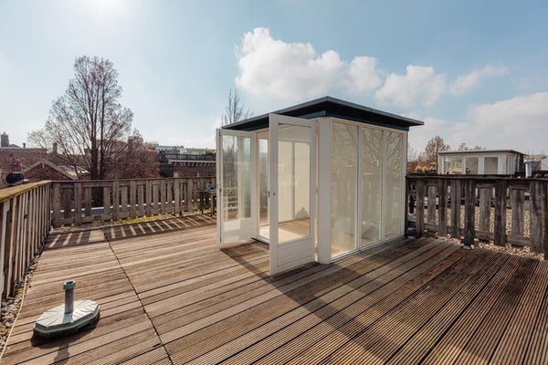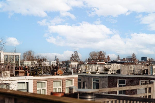 Het appartement heeft een balkon op de tweede verdieping en een riant dakterras met bijzonder mooi uitzicht over Oud-Zuid en het groene Vondelpark.