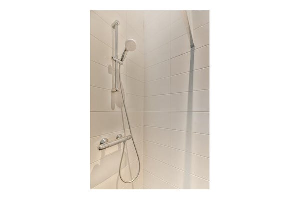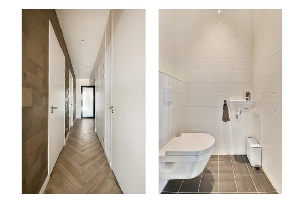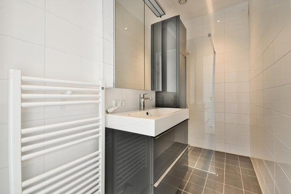 Grenzend aan de hal vindt u een separaat toilet, wasruimte, de ruime slaapkamer voorzien van genoeg kastruimte en de luxe badkamer met inloopdouche, handoekradiator en wastafel.