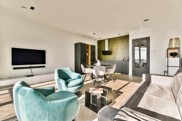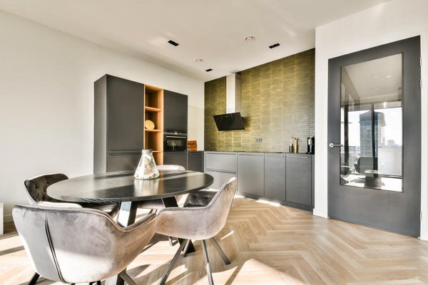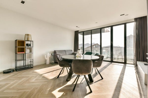 Als u verder loopt via de hal bereikt u de woonkamer gelegen aan de havenzijde van het complex. Vanuit deze kamer heeft u toegang tot het balkon welke u een adembenemend uitzicht geeft over het water (IJ) naar het centrum van Amsterdam. Grenzend aan deze ruimte vindt u de moderne open keuken. De keuken beschikt over alle benodigde inbouwapparatuur zoals een inductiekookplaat, afzuigkap, koel/vriescombinatie, oven/magnetron combinatie, Quooker heetwaterdispenser en vaatwasser.