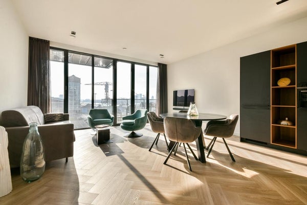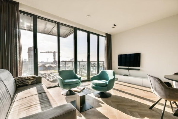 Prachtig, modern gemeubileerd 1 slaapkamer appartement met een waanzinnig uitzicht over het IJ tot aan het Centraal Station.