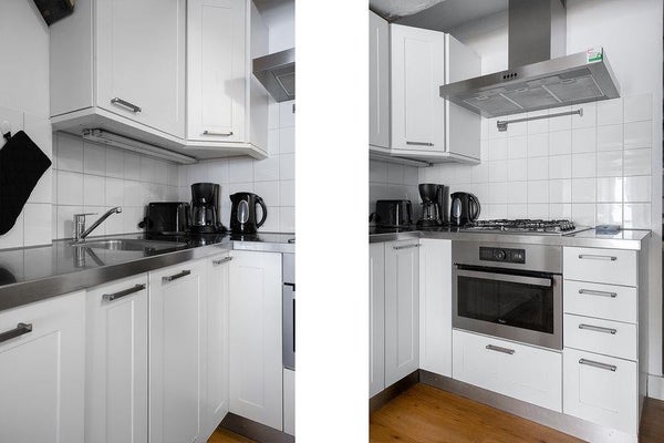 • Open keuken met o.a. gasfornuis, oven, afzuigkap en voldoende kastruimte