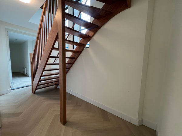 Het gehele appartement is voorzien van een prachtige lichte visgraat vloer! Bij binnenkomst wordt u verwelkomd in een ruime hal met opvallende glas-in-loodramen, die het licht op een magische manier filteren en een warm welkom creëren. Vanuit de hal heeft u direct toegang tot een toilet met moderne afwerking. De keuken is voorzien alle benodigde inbouwapparatuur te noemen een kookplaat met afzuiger, koel-vries combinatie, vaatwasser en combi oven-magnetron.