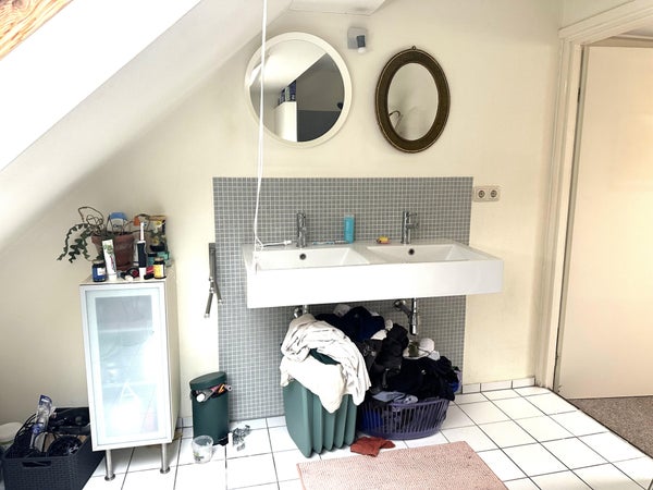 Tweede verdieping: Overloop, 3 ruime slaapkamers en een zeer ruime badkamer met dubbele wasbak, aparte douche en bad.