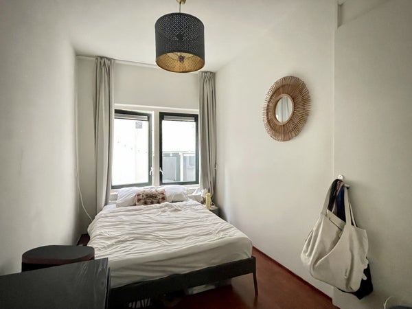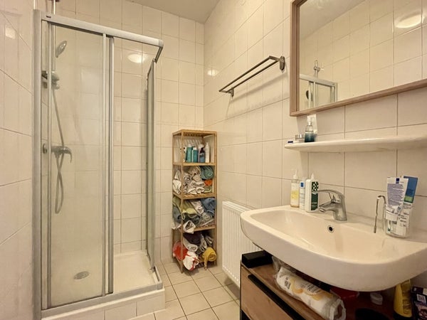 Via de hal bereik je de eerste slaapkamer, de badkamer met douche en wastafel, en het aparte toilet. Aan de andere kant van de woonkamer vind je de tweede, grootste slaapkamer. Deze kamer beschikt over een inbouwkast.