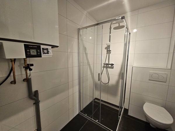 Nieuw aangelegd met douche en wastafel.