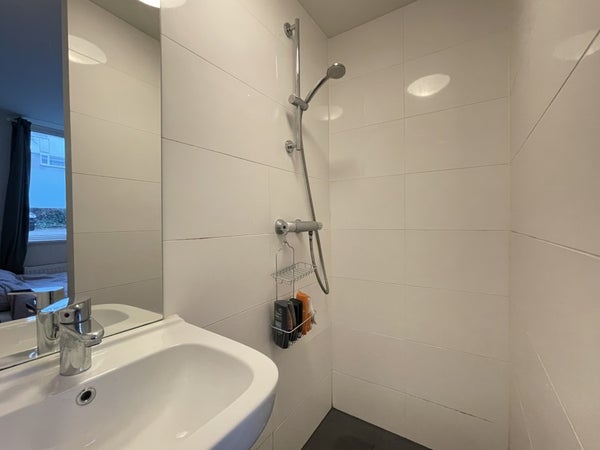 Separaat toilet en een wasmachine zitten op de gang en zal worden gedeeld met twee andere bewoners.