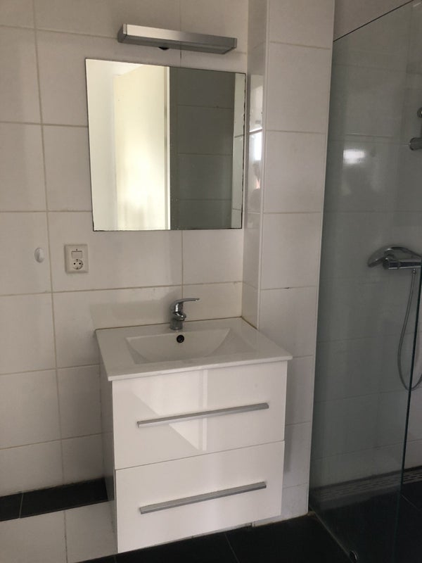 De open keuken is o.a. voorzien van een inbouwkoelkast, inductiekookplaat, afzuigkap en vaatwasser. 2 slaapkamers. De moderne badkamer met grote tegels tot aan het plafond heeft een douche, toilet, wasmachine aansluiting en wastafel.