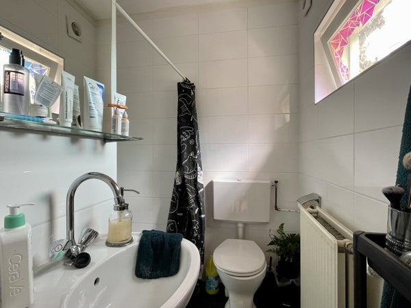 De badkamer is voorzien van inloop douche, wastafel en toilet.