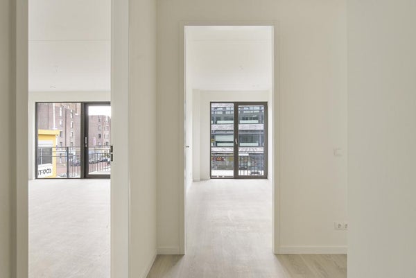 Wij hebben Broerenstraat 45-27 in hartje Arnhem per 1 december 2025 beschikbaar! Het betreft een 2-kamer appartement op locatie "Markt" met een oppervlak van 88 m2, gelegen op de tweede verdieping. Balkon van ca 7,5 m2. Lift aanwezig. De huurprijs hiervoor bedraagt € 1625,- en € 72,50,- servicekosten per maand (excl. gas/water/licht). De huurovereenkomst wordt voor minimaal 1 jaar aangegaan. De borgsom bedraagt minimaal 1 keer de maandhuur + servicekosten (dit kan afwijken). Complex Verto, gelegen aan de Broerenstraat 45 in de historische binnenstad van Arnhem, is een gebouw met historie en moderne vernuftigheid. Hier staan comfortabel wonen en leefkwaliteit voorop! Het van origine kantoorgebouw is in 2020 omgevormd tot een plek waar het goed thuiskomen is. Verto ligt midden in een compleet vernieuwd stadsgebied. Je hebt hier alles bij de hand om lekker te leven. Het filmhuis, cafés en terrasjes, restaurants, trendy winkels en het NS-station; alles is slechts een paar minuten lopen. De 58 hoogwaardig afgewerkte appartementen beschikken allen over een eigen berging in de onderbouw, een privé buitenruimte en een gezamenlijke fietsenberging met oplaadmogelijkheden voor uw rijwiel. De woning en extra's Deze woning heeft Energielabel A++. De woning is luxe uitgevoerd met vloerverwarming en een moderne laminaatvloer (breedstrook Balterio Dolce) met hoge plinten. Genieten van lekker koken in de keuken met een wit keukenblok en easy grey aanrechtblad, Siemens inbouwapparaten (inductie kookplaat, vaatwasser, combi magnetron, afzuigschouw en een Bosch koelkast met vriesgedeelte). Het balkon/ privé buitenruimte is gelegen op het zuiden. Verder is de badkamer afgewerkt met aparte douche en dubbele wastafel (en kranen) met een grote spiegel. Ook zijn de badkamer en de separate toiletruimte betegeld met een strakke afwerking. De berging bevindt zich in de kelder en is circa 4 m2 groot. Ook zijn er in complex Verto of in de Q-park parkings (beschikbaarheid onder voorbehoud) met (vrijwel) directe toegang tot het complex. De prijs voor deze parkeerplaatsen is op aanvraag. Mocht u interesse hebben, dan verzoeken wij u z.s.m. het inschrijfformulier (bij ons op te vragen) met de volgende documenten COMPLEET bij ons aan te leveren: -Kopie legitimatiebewijs -Werkgeversverklaring (recent) -Kopie van de drie meest recente salarisstroken -Kopie van de drie meest recente bankafschriften met storting van het salaris, uitkering, pensioen e.d. -Uittreksel bevolkingsregister (recent) -Bij pensionering of uitkering dient u uw laatste jaaropgaaf te verstrekken -Een verklaring van uw huidige hypotheekverstrekker of verhuurder -Bij een eigen bedrijf dient u een balans, winst- en verliesrekening over het meest recente volledige jaar, een accountantsverklaring en een recent uittreksel uit het Kamer van Koophandel-register te overleggen (max. 1 maand oud). Inkomenseisen Houdt u s.v.p. rekening met de inkomenseis voordat u zich inschrijft. U dient aan onderstaande norm te voldoen indien u in aanmerking wenst te komen voor een woning. De inkomensnorm luidt als volgt: Het bruto-maandinkomen moet minimaal 3,5 maal de maandhuur incl. servicekosten bedragen. Eigen vermogen Om wellicht beter aan de inkomenseis te kunnen voldoen, kunt u van uw eventuele eigen vermogen 10% bij uw bruto jaarinkomen optellen. U dient dan wel het eigen vermogen aan te kunnen tonen, door middel van een kopie bankafschrift o.i.d.. De getoonde foto's zijn van een soortgelijk appartement gelegen op een lagere verdieping.