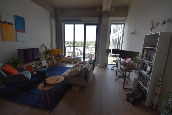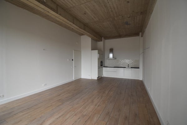 Alle appartementen zijn uniek door de hoge ruimte. De plafonds zijn circa 4 meter hoog en hebben een schitterende industriële, grove en onafgewerkte betonlook. Door het behoud van deze plafonds, zijn er speciaal lichtpunten aangebracht in de wanden van het appartement. De woonkamer heeft een schuifpui die bijna kamerhoog is en dus voor veel licht én een prachtig uitzicht zorgt. Doordat het balkon van glas is, wordt niets van het uitzicht ontnomen. Het balkon is ongeveer 4 à 5 m2.