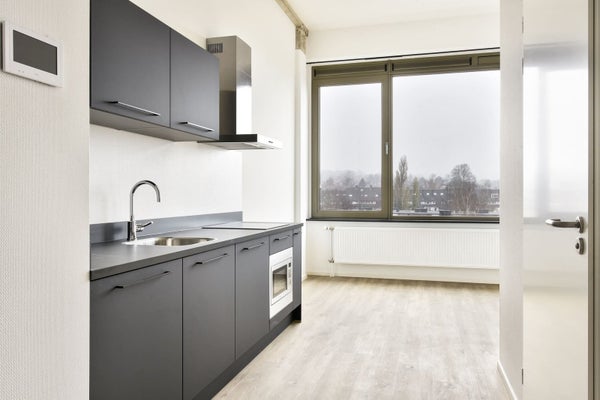 Per direct verhuurt MVGM Wonen een studio aan de Velperweg ****** in Arnhem, gelegen in het complex 'House of Arnhem' op de derde verdieping. Dit complex, ideaal voor afgestudeerden of jonge bewoners, biedt meer dan alleen een eigen ruimte. In House of Arnhem beschikken bewoners over gedeelde ruimtes zoals werkplekken, een huiskamer, meeting spaces en een koffiebar, waardoor het ook een sociale ontmoetingsplek is. De studio zelf heeft een open indeling met een keuken, voorzien van inbouwapparatuur, en een badkamer met douche, wastafel en toilet. Dit concept combineert privétijd met mogelijkheden voor interactie, wat zorgt voor een unieke woonervaring.