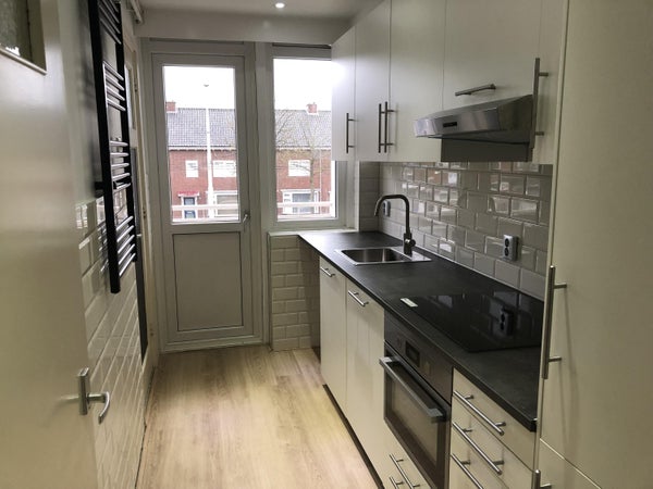 Entree/hal met meterkast en toilet. Er zijn twee ruime slaapkamers, waarvan de grootste ca. 10 m² groot is. De grote woonkamer biedt toegang tot het zuidelijk gelegen balkon. De keuken is netjes uitgevoerd en voorzien van een inductiekookplaat, afzuigkap, combi magnetron/oven en koelkast met vriesladen. De badkamer beschikt over een douche, wastafel, cv-installatie en aansluiting voor de wasmachine.