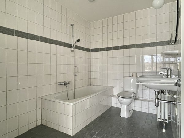 De badkamer is uitgerust met een royaal ligbad, een aparte douche en een toilet. Daarnaast beschikt het appartement over een tweede separaat toilet voor extra comfort.