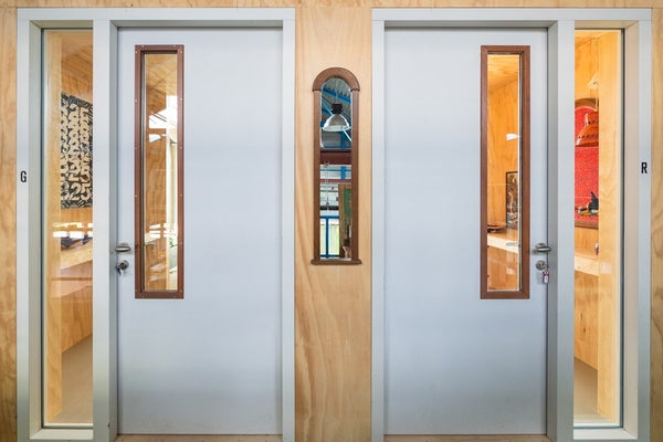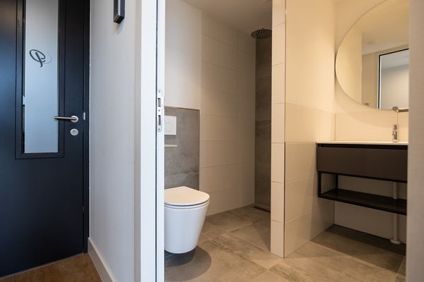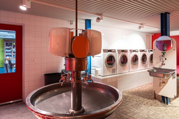 - Wasruimte met wasmachine, drogers en toiletten