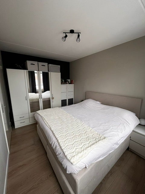 Dit moderne appartement, gelegen in een complex met zes eenheden over drie verdiepingen, dateert uit 2023 en biedt een instapklare woonruimte van 55 m². Bij binnenkomst in de hal vind je de meterkast en een volledig betegelde toiletruimte. De L-vormige woon-/eetkamer met geïntegreerde keuken biedt veel daglicht dankzij de grote ramen en is uitgerust met moderne apparatuur. De slaapkamer ligt rustig aan de achterzijde en heeft toegang tot een ruim balkon. De badkamer is praktisch en modern met een inloopdouche. Het appartement heeft een mooie houten tegelvloer en is voorzien van mechanische ventilatie en een lift. Huren kan voor minimaal 24 maanden, met een waarborgsom van € 2.060 en een servicekost van € 70.