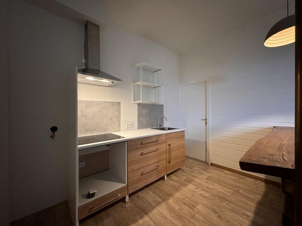 Keukenblok is geheel vernieuwd en heeft een keramische kookplaat, RVS afzuigkap, gootsteen, lades en een kastje.