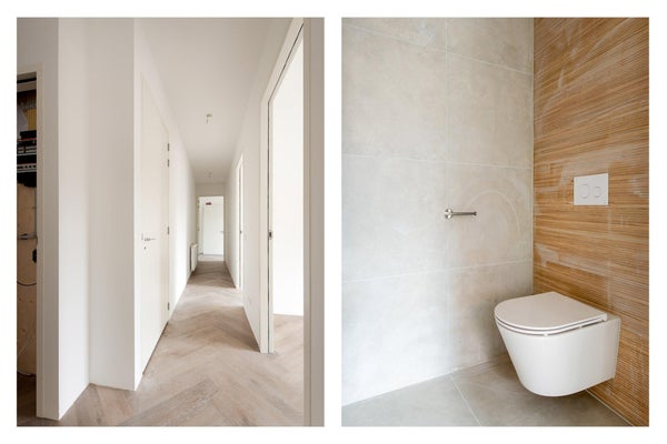 De badkamer is modern afgewerkt en voorzien van een ruime inloopdouche, een tweede toilet en een stijlvol wastafelmeubel. De slimme indeling en hoogwaardige materialen zorgen voor een luxe uitstraling in combinatie met dagelijks comfort.