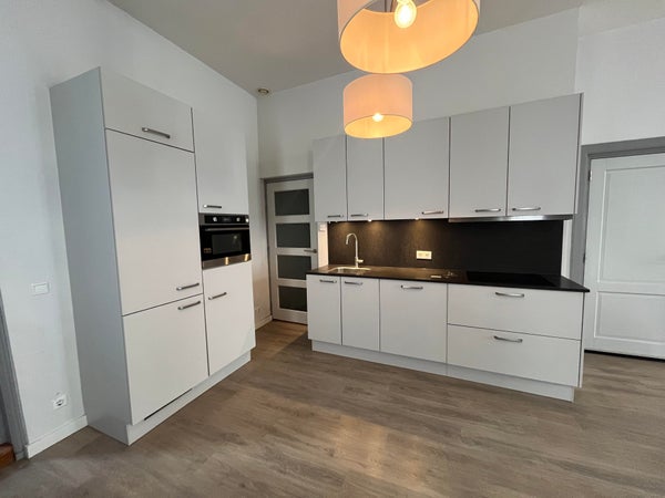 De ruime woonkamer is voorzien van een open keuken welke beschikt over een inductiekookplaat, afzuiging, combi-magnetron, vaatwasser, koelkast en een vriezer.