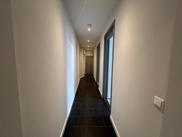 Tevens beschikt het appartement over drie slaapkamers, een badkamer, toiletruimte, een bergruimte en een lange hal waarin de aansluitingen van de wasappratuur zijn gevestigd.