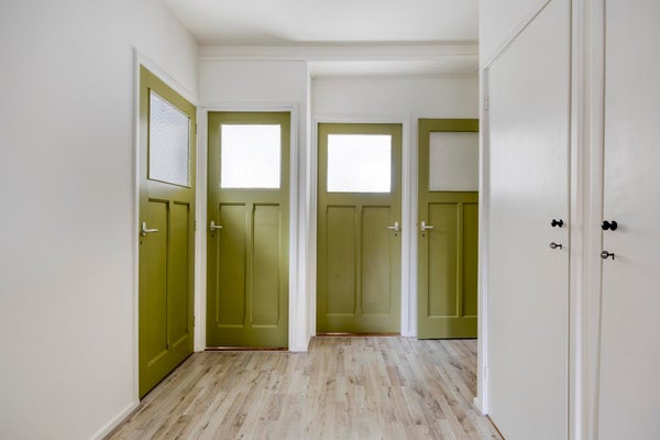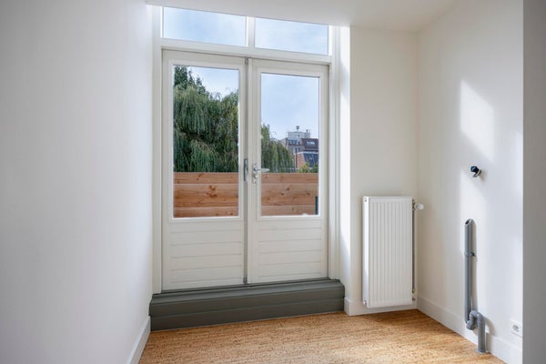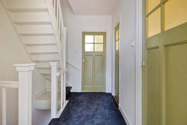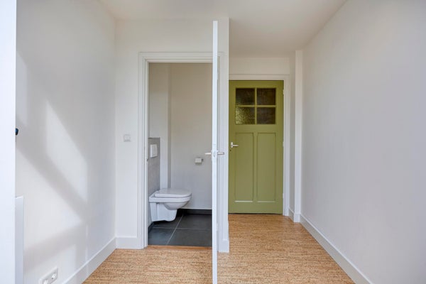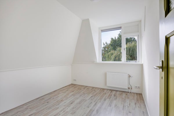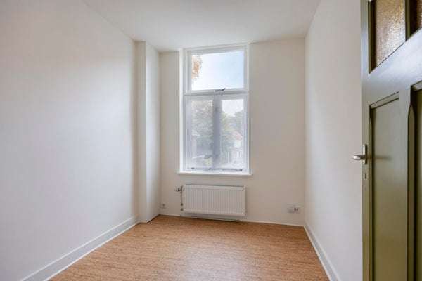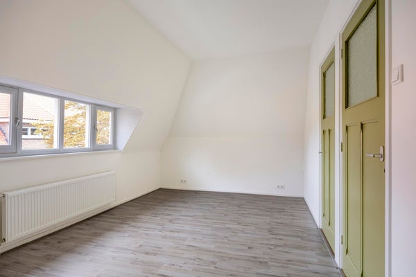 De bovenverdieping biedt drie ruime slaapkamers, elk met een prettige lichtinval en voldoende ruimte voor een tweepersoonsbed en kast. De grootste slaapkamer aan de voorzijde heeft een charmant uitzicht over de straat en voelt extra ruim aan door de gunstige indeling.