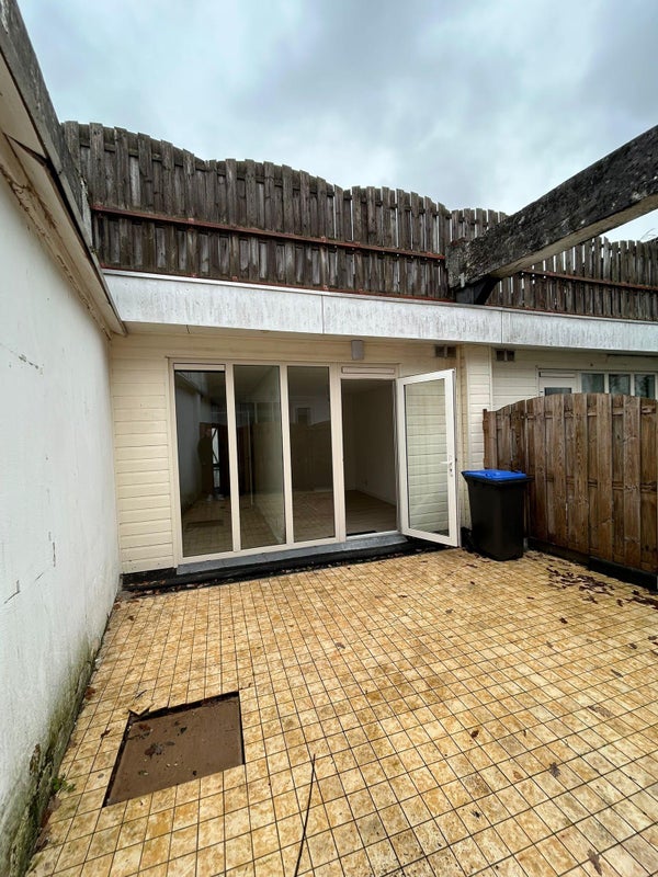 Aan de achterzijde van de woning bevindt zich een privé patio. Deze is bereikbaar via de slaapkamer en is volledig betegeld, waardoor het onderhoudsvriendelijk is.