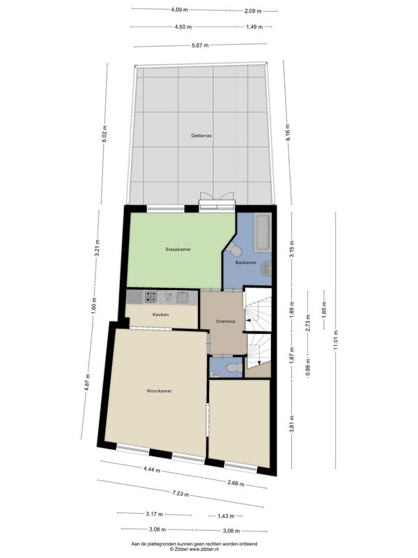 Via de entree komt u in de woning met toegang tot het toilet. De ruime woonkamer beschikt over grote ramen die zorgen voor veel natuurlijke lichtinval. Aansluitend bevindt zich de keuken, welke is voorzien van diverse inbouwapparatuur, waaronder een koelkast, vaatwasser en gasfornuis. De ruime eetkamer heeft eveneens grote ramen die zorgen voor een prettige lichtinval en biedt directe toegang tot het dakterras.