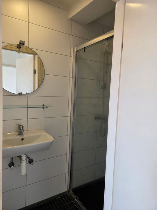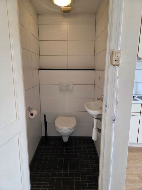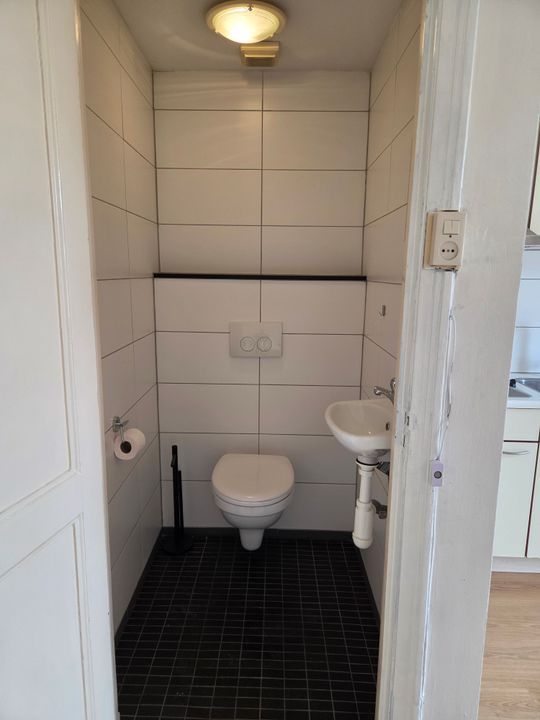 Gemeenschappelijke entree op de begane grond, interne trap naar de eerste etage, overloop waar de trap naar de 2e etage zich bevind. Op de 2e etage treft u de toegangsdeur naar het appartement. U komt binnen in de keuken welke overloopt in de woonkamer vanwaar het toilet en de slaapkamer bereikbaar zijn. Via de slaapkamer kan de badkamer worden bereikt.