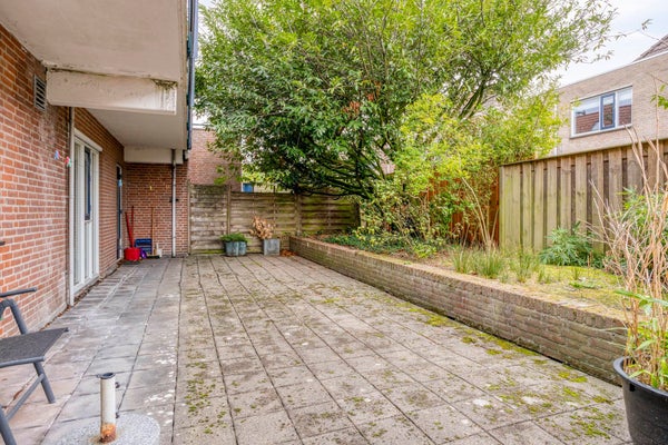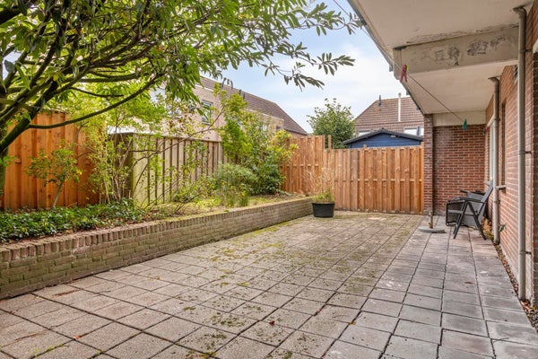 Aan de achterzijde van het appartement is de tuin gelegen. In de tuin kan men vrij beschut zitten.