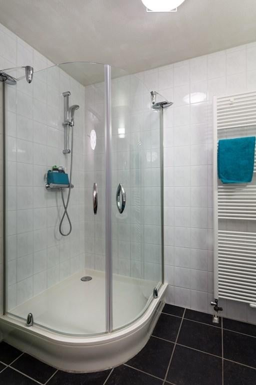 De badkamer is functioneel en fris, voorzien van een aparte douche en een wastafel. Dit maakt het dagelijks gebruik zeer comfortabel en praktisch.