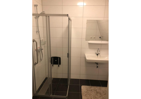 - (Deels) betegelde badkamer voorzien van inloopdouche met glazen douchewand en wastafel met spiegel;