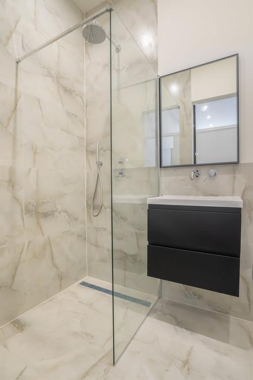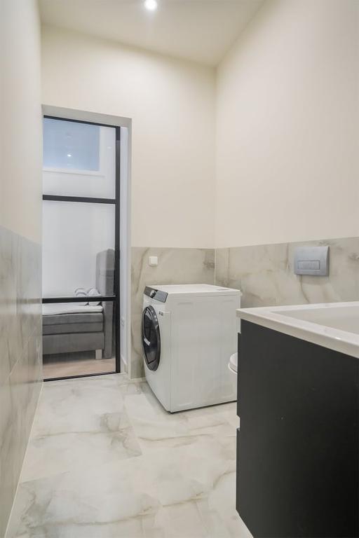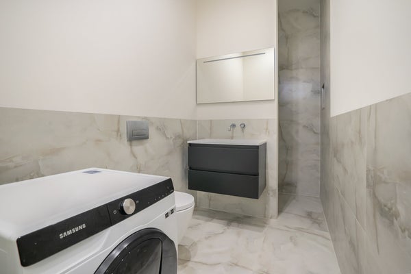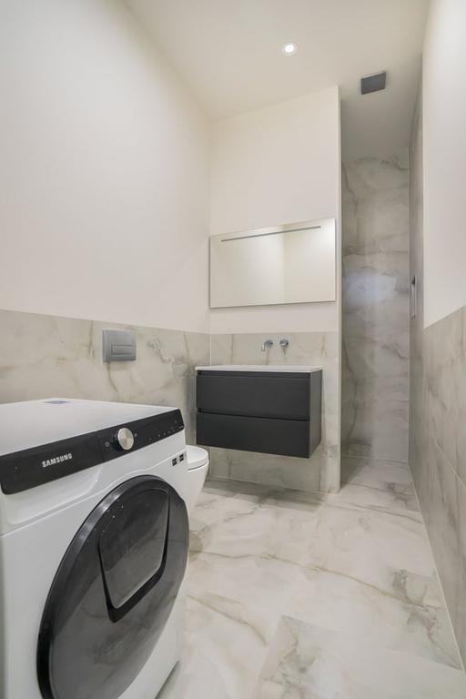 U komt binnen in de hal die doorloopt tot een lichte woonkamer voorzien van een nette nieuwe keuken met modern inbouw apparatuur, een tussenwand waarachter zich een net slaapvertrek bevind en een moderne badkamer voorzien van een zwevend toilet, wastafel, regendouche
