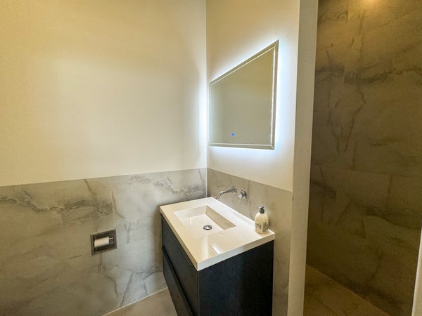 - En-suite badkamer met nette afwerking en wasmachine-aansluiting