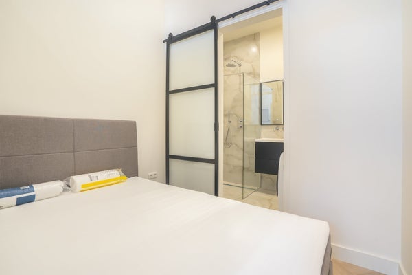 U komt binnen in de hal die doorloopt tot een lichte woonkamer voorzien van een nette nieuwe keuken met modern inbouw apparatuur, een tussenwand waarachter zich een net slaapvertrek bevind en een moderne badkamer voorzien van een zwevend toilet, wastafel, regendouche