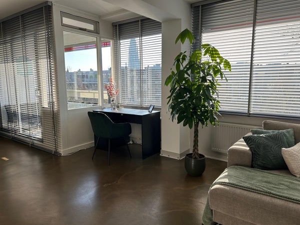 Dit 3-kamer appartement heeft een riante L-vormige woonkamer van ca. 34m². De lichte woonkamer heeft een groot ramenpartij en een creatieve stalenwand.