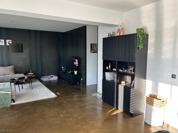 De woning is voorzien van een praktische moderne gietvloer. De ruimtes zijn via een open verbinding te bereiken, de enige ruimte die voorzien is van een deur is de badkamer.