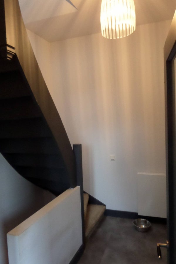 In de hal bevind zich de meterkast en trap naar het appartement.