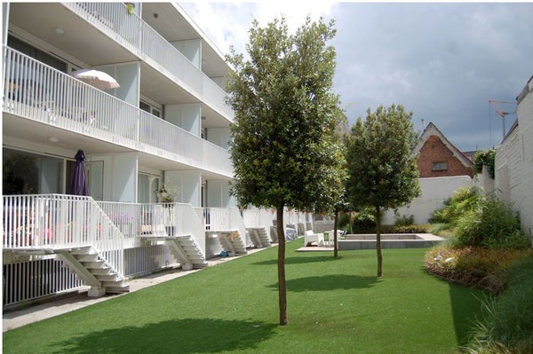 fietsenberging en van de binnentuin van 500 m2 met gezellige