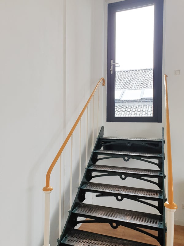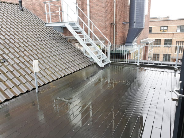 Middels een authentieke gietijzeren opgang heeft u toegang tot het vrij grote en op het zuiden gerichte dakterras.