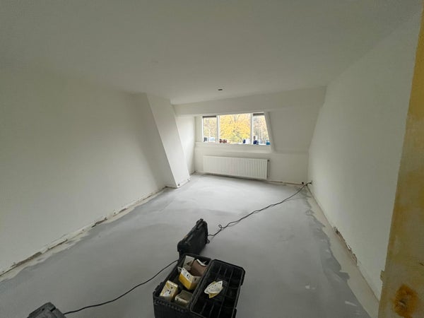 Alle wanden zijn opnieuw gesaust en er is een nieuwe pvc vloer gelegd.