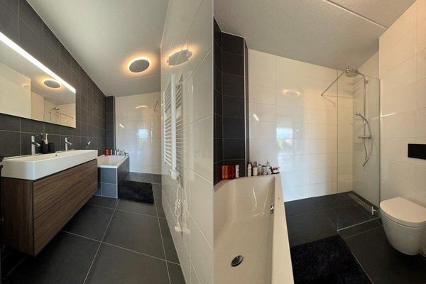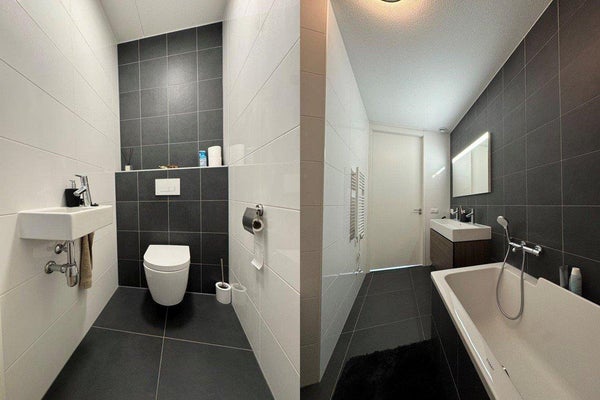 Met inloopdouche, ligbad , wastafel met meubel. Apart toilet.