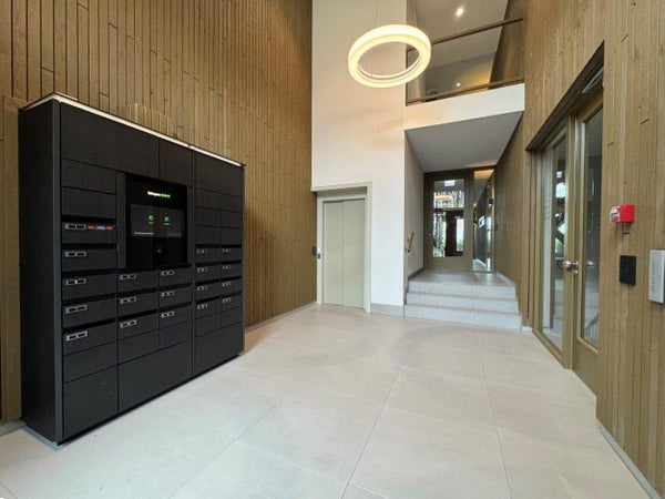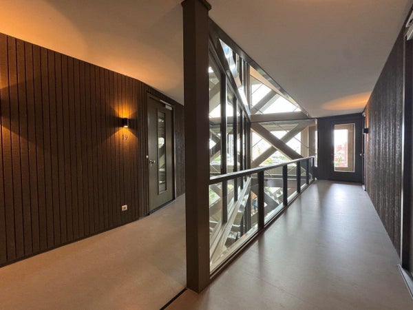 Bij binnenkomst in het gebouw treft u de gezamenlijke hal met brievenbussen, fietsenstalling, lift en toegang tot het trappenhuis.