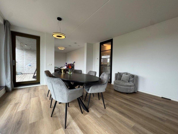 Royale living met pvc vloer en middels een loopdeur toegang tot terras.