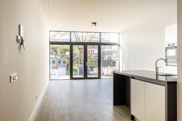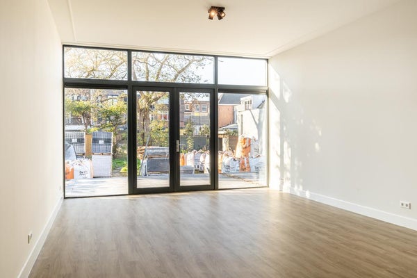De woonkamer is opgedeeld in een voor- en een zitkamer en is gelegen aan de rustige achterzijde van het pand. Via de openslaande deuren is de privé tuin te bereiken.