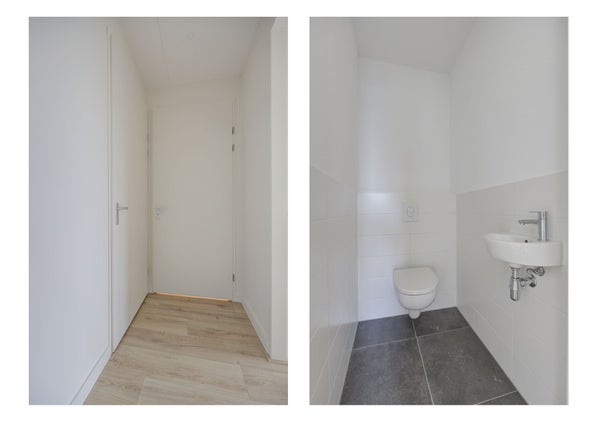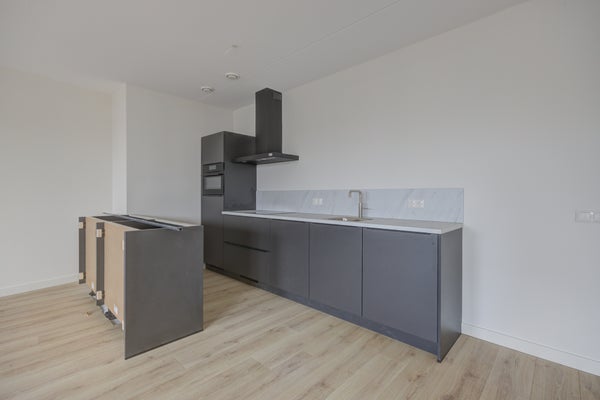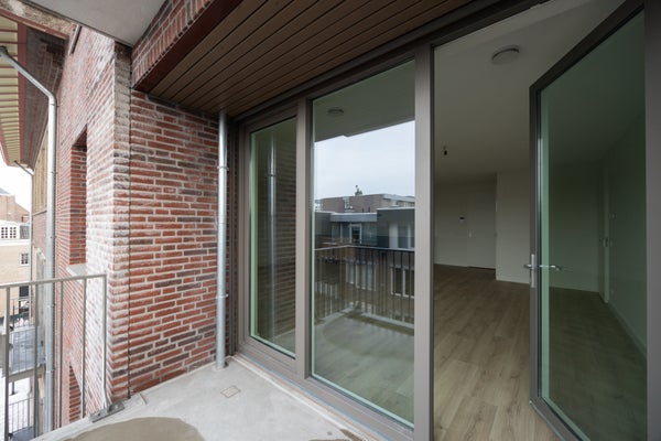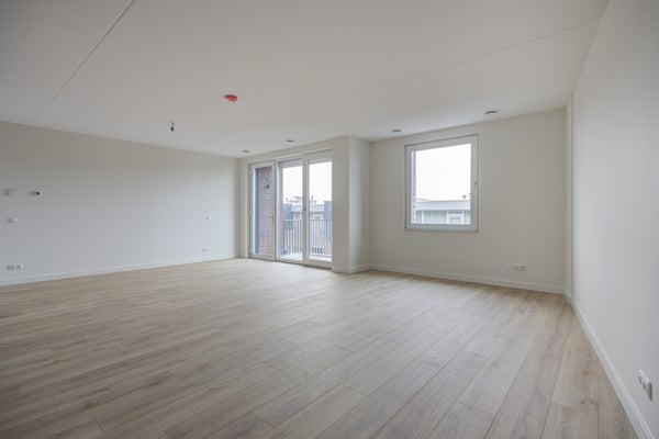 We startten in de woonkamer. Dit is een fijne ruimte door de open verbinding met de keuken. Door de grote raampartijen geniet je hier van veel lichtinval en met een loopdeur stap je gemakkelijk op het balkon. Vanuit deze ruimte ga je naar de separate toiletruimte (met zwevend toilet en fontein), de slaapkamer en de badkamer.