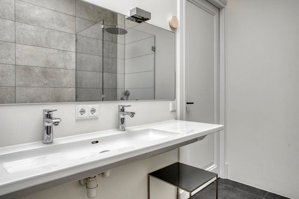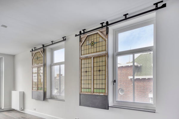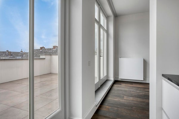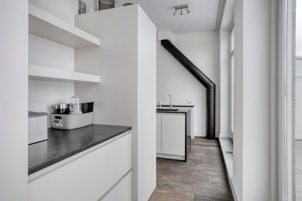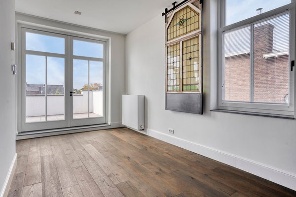 De maisonnette is voorzien van mooie luxe paneeldeuren met verborgen beslag, glas in lood bovenramen, inbouwspots, domotica, beglazing van 4 seizoenen glas en vloerverwarming.