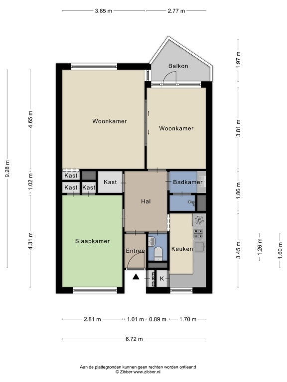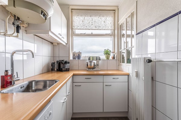 Entree met vernieuwde meterkast en toegang tot het tochtportaal met garderobe als doorgang naar de hal met intercom en praktische bergkast. Vanuit de hal zijn de keuken, slaapkamer, badkamer, toilet en eetkamer te bereiken. Gedeeltelijk betegelde toiletruimte met closet en fonteintje; Dichte keuken aan de voorzijde van het appartement gesitueerd. De keuken in hoekopstelling is compleet uitgerust en voorzien van een 4-pits gasfornuis, afzuigkap, (elektrische) boiler, vaatwasser, en diverse bergkasten. Tevens zijn in de keuken de aansluitingen t.b.v. de wasmachine gesitueerd; De moderne badkamer is voorzien van een inloop (regen)douche, een wastafel en inbouwspots; Ruime slaapkamer (ca. 4.31 x 2.81m.) gelegen aan de voorzijde van het appartement en voorzien van een tweetal ruime inbouwkasten en laminaatvloer; Lichte, ruime eetkamer (ca. 3.81 x 2.77m.) met laminaatvloer en toegang tot het balkon met zonnescherm op het zuidoosten gelegen (ca. 4 m²) én toegang tot de woonkamer middels de (afsluitbare) schuifdeuren. Sfeervolle woonkamer (ca. 3.85 x 4.65m.) voorzien van een inbouwkast, laminaatvloer en prachtig vrij uitzicht over de singel.