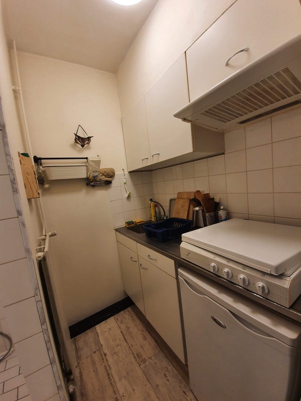 Beschikbaar per 1 januari 2026: een unieke starterswoning in Breda, op loopafstand van het historische stadshart, Valkenbergpark en het centraal station. Deze semi-zelfstandige studio, gelegen op de eerste verdieping van een kleinschalig complex, biedt een woongedeelte van ca. 13m2 en een slaapgedeelte van ca. 5m2. Bij binnenkomst vind je links de semi-open keuken, uitgerust met een 4-pitsgaskookplaat, koeler en voldoende opbergruimte. Naast de keuken bevindt zich een douche. Het slaapgedeelte heeft een hoogslaper met veel bergruimte eronder en een eigen wastafel. Het toilet is gedeeld met één andere persoon. De huurprijs is €785,- per maand, inclusief voorschot voor gas, water en elektra. Er is geen huursubsidie mogelijk. Je moet minstens 3x de huurprijs per maand verdienen. Oppervlakte: 21m2, 2 kamers, 1 badkamer, 1 slaapkamer, geen dakterras, gestoffeerd, locatie aan drukke weg.