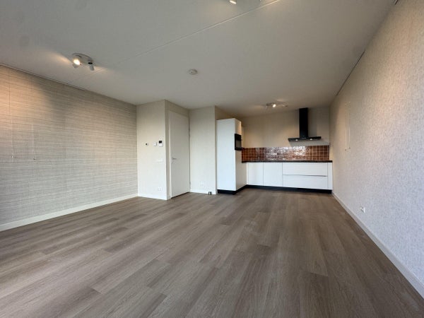 Vanuit de woonkamer is het balkon bereikbaar, gelegen op hoogte met uitzicht over het centrum van Breda. Een fijne plek om buiten te zitten en te genieten van de stad.