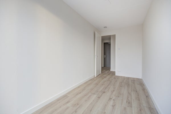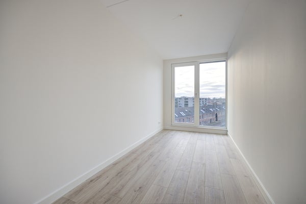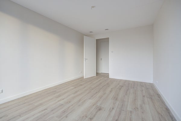 We lopen verder naar de 2 slaapkamers. Beide kamers zijn voorzien van grote, hoge raampartijen waar wederom veel licht binnen schijnt. Fijne kamers om je dag te beginnen en af te sluiten.